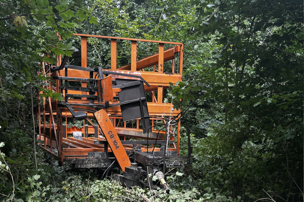 Am Montag, 4. August 2025, wurde im Waldgebiet Winkelacher bei Mülligen, nahe der A3, ein orangefarbener Ballensammler aufgefunden.
